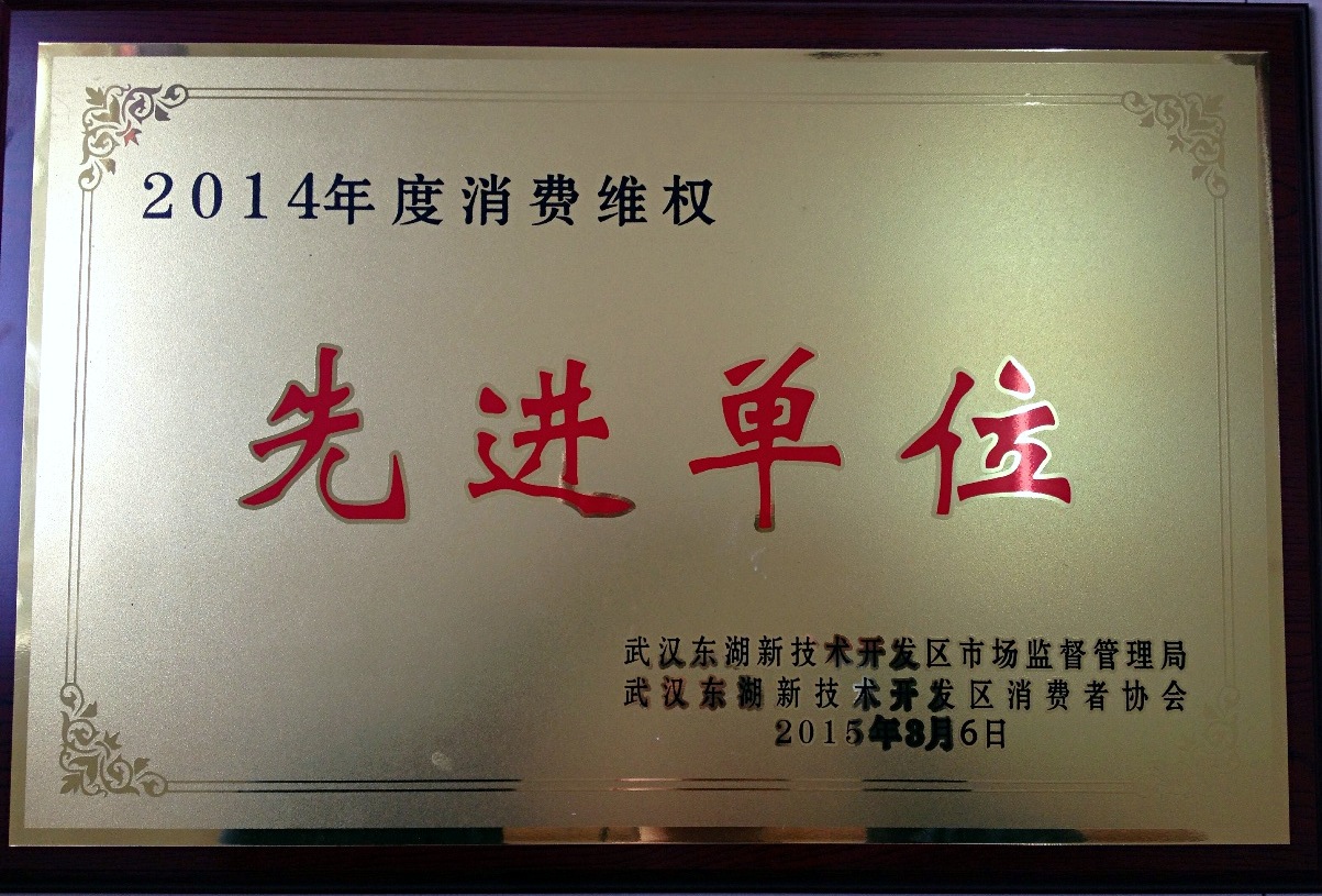 武漢神宇電氣有限公司榮獲“2014年度消費維權先進(jìn)單位”榮譽(yù)稱(chēng)號,這是神宇電氣連續三年獲得的,由武漢東湖新技術(shù)開(kāi)發(fā)區市場(chǎng)監督管理局、武漢東湖新技術(shù)開(kāi)發(fā)區消費者協(xié)會(huì )頒發(fā)的先進(jìn)單位稱(chēng)號。
